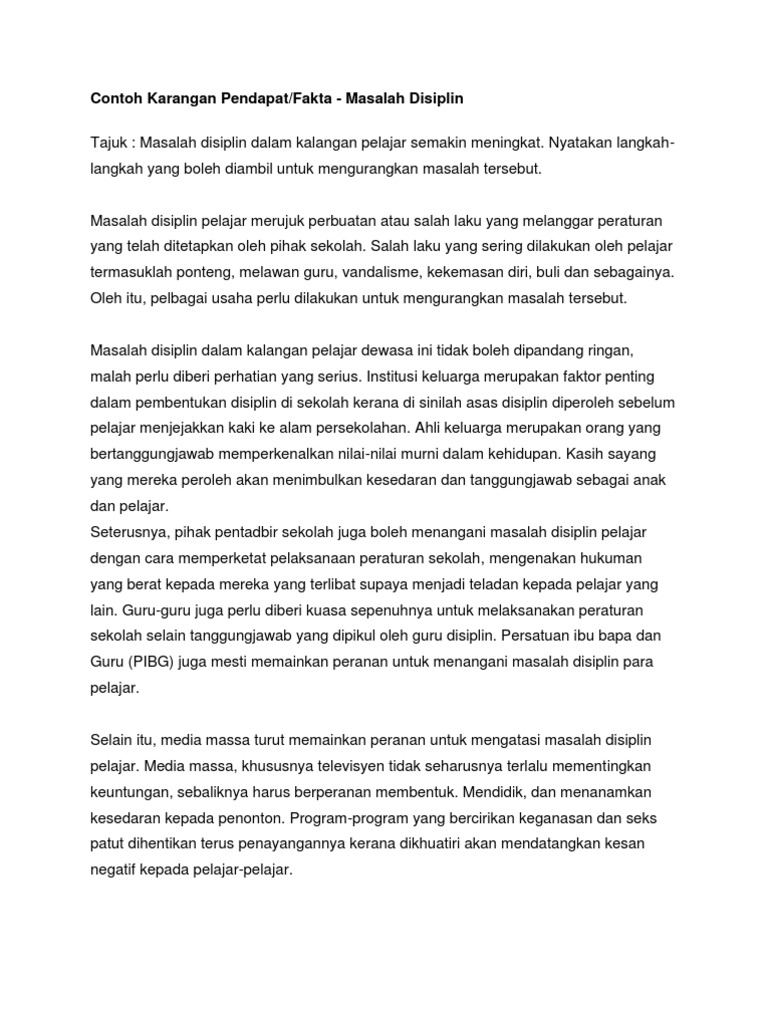 Bm Contoh Karangan Perbincangan Punca Masalah Pelajar